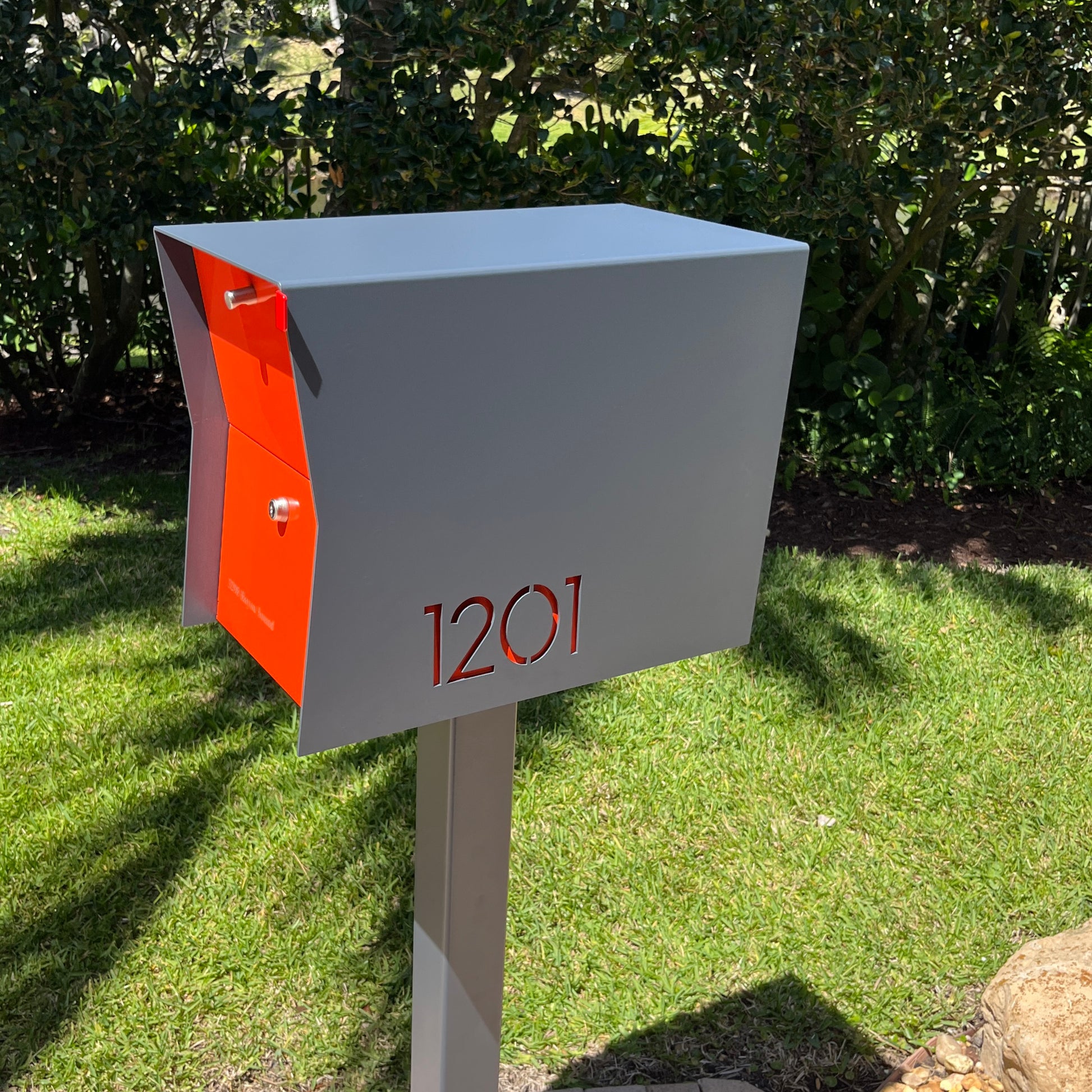 The Retrobox Locking Package Dropbox, post mounted Mailbox is a Mid-century inspired modern mailbox, the perfect curb appeal for your home, office, condo or development. Made of quality materials, here in the USA.